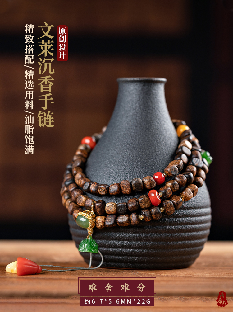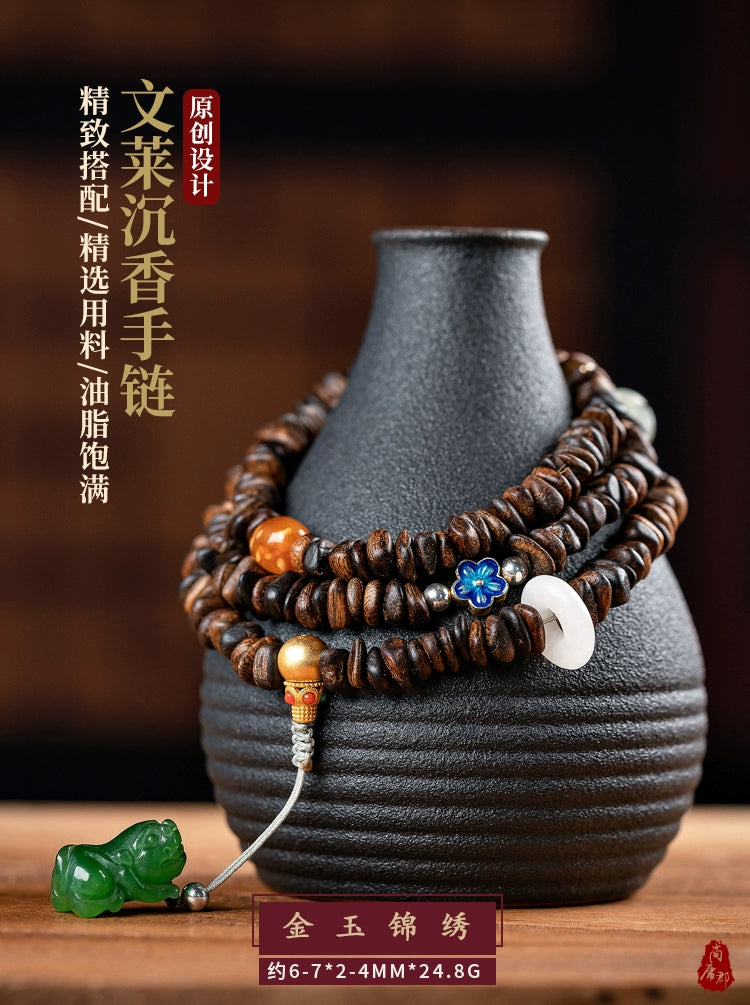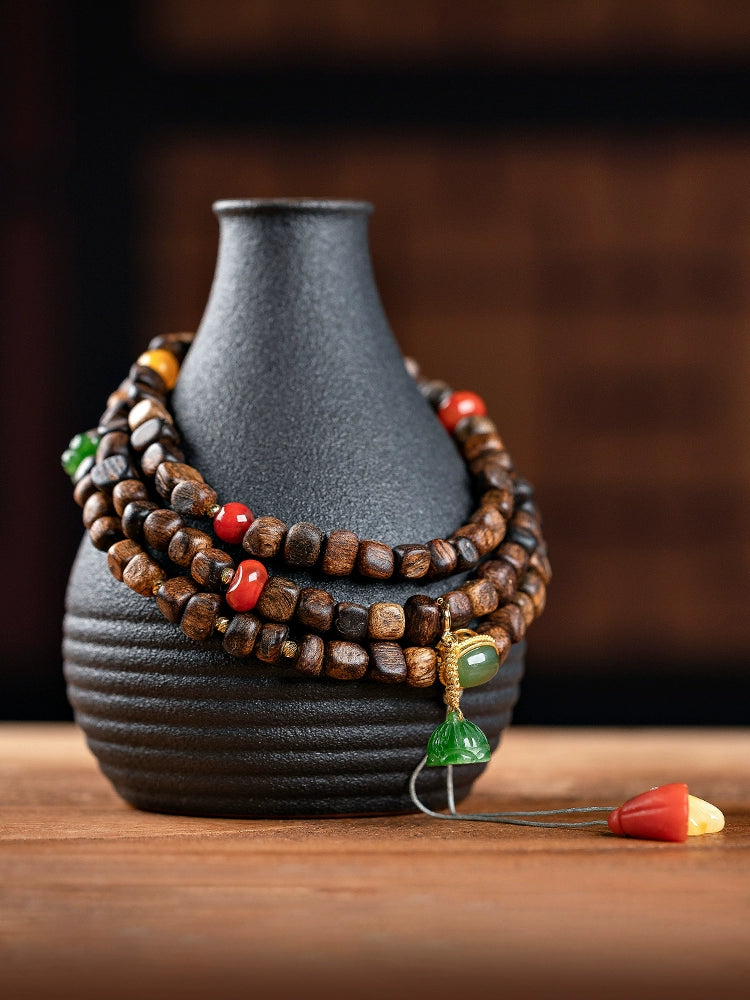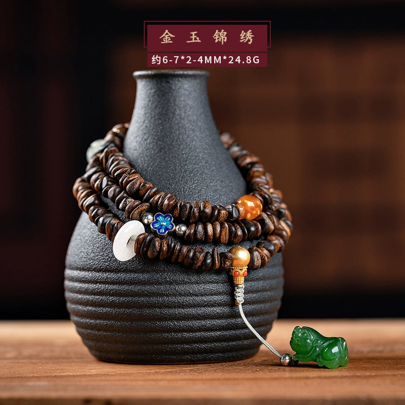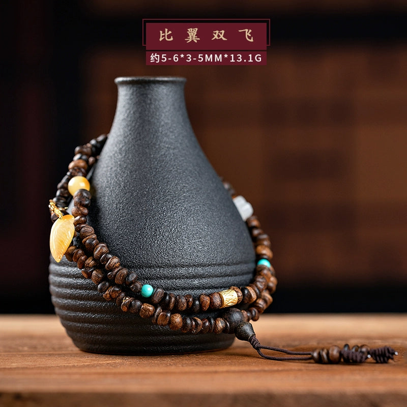 • Submerged Brunei agarwood bracelet, fidelity old material, simple 108 Buddha beads, women's multi-circle bracelet, original female