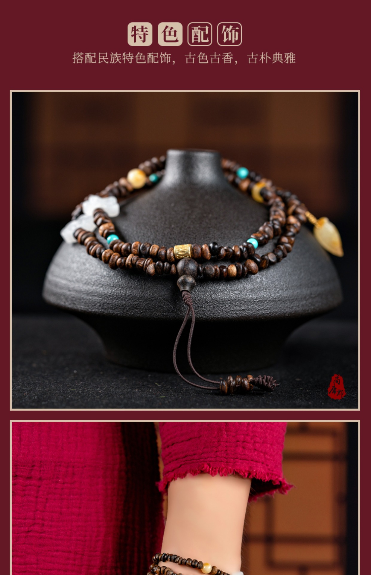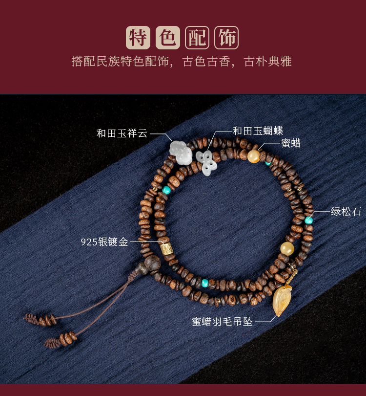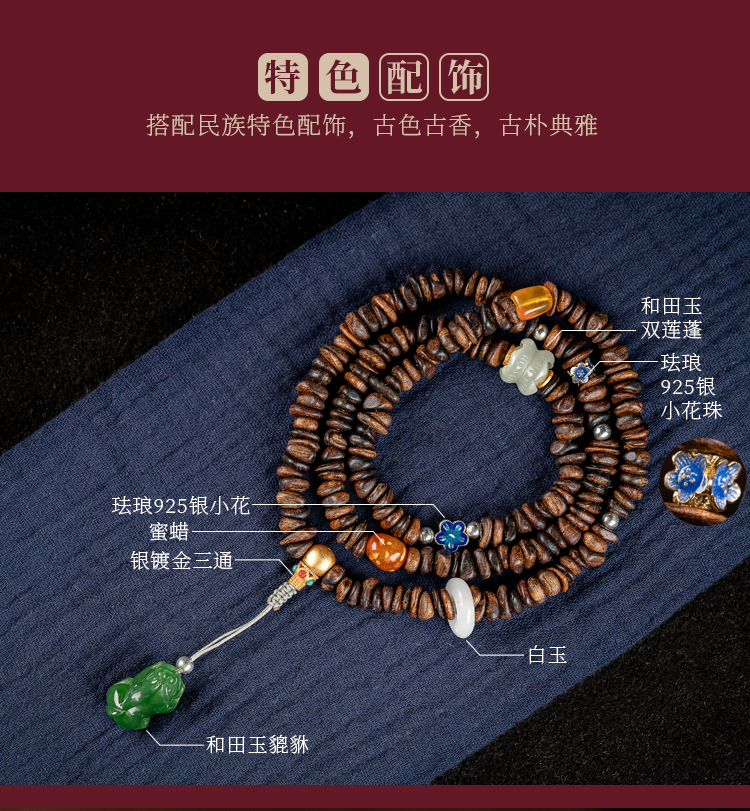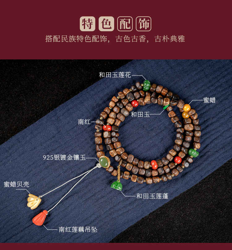 • Submerged Brunei agarwood bracelet, fidelity old material, simple 108 Buddha beads, women's multi-circle bracelet, original female