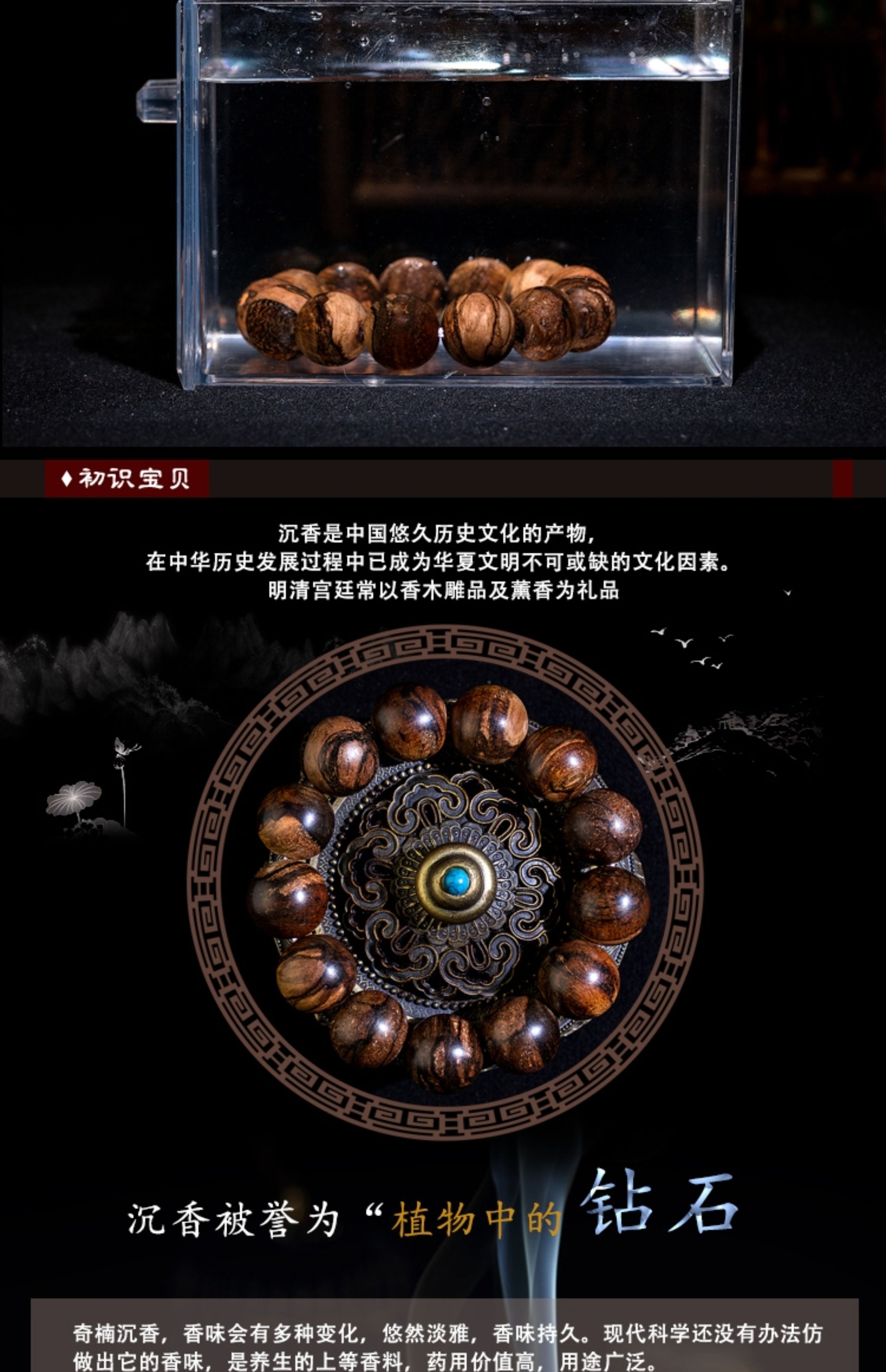 • Natural old material Cambodian Bai Qinan agarwood bracelet men's plate play Buddha beads submerged grade bracelet fidelity genuine