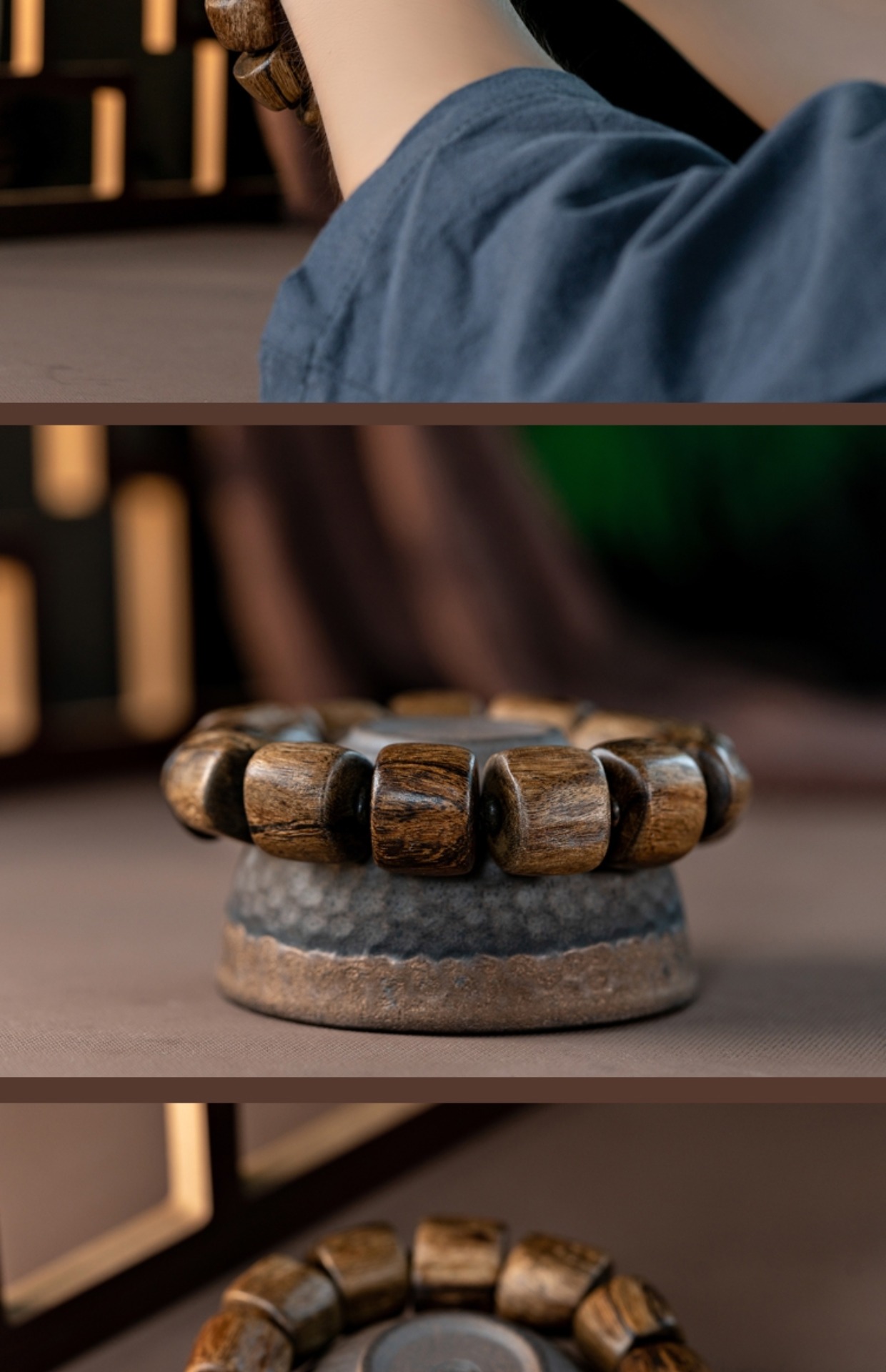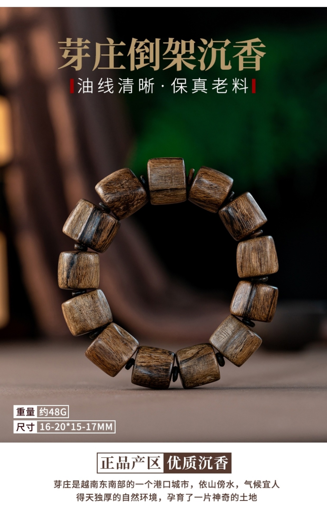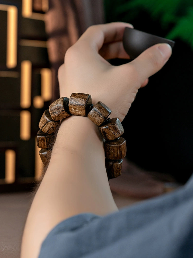 Natural old material, Vietnam Nha Trang inverted frame agarwood Buddha beads wooden random bracelet men's bracelet submerged grade fidelity