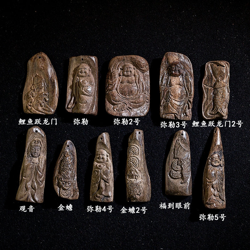 Natural old material Daragan agarwood Buddha brand agarwood carving Guanyin Maitreya brand Buddha bead bracelet DIY pendant