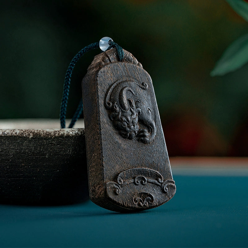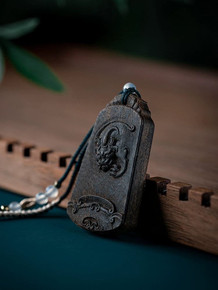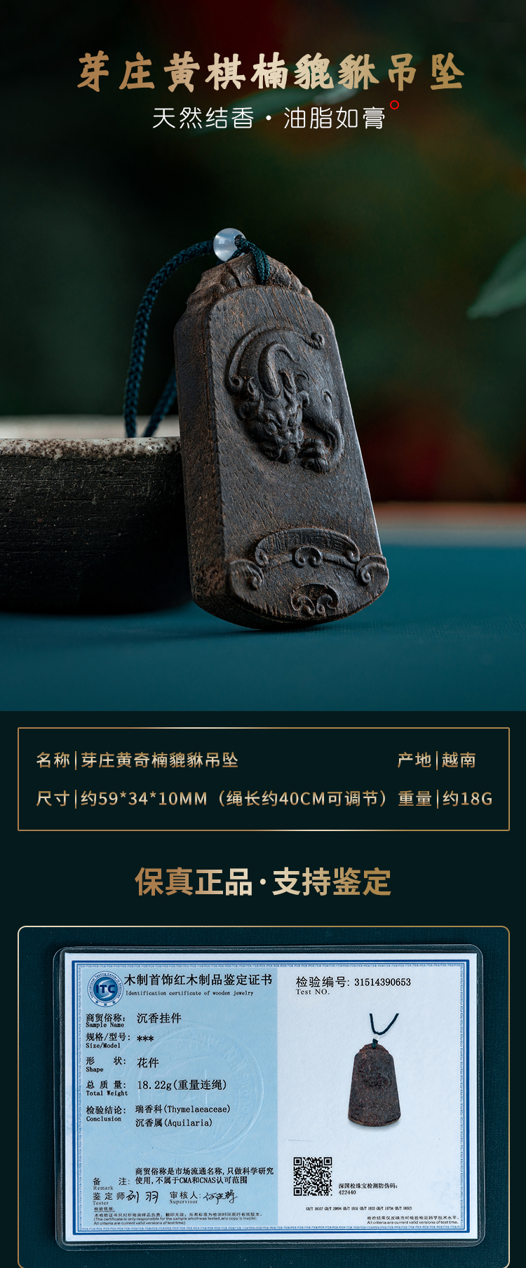 • Vietnam Nha Trang Huang Qinan old agarwood unicorn auspicious beast pendant hand-carved Qinan brand wooden cultural and play pendant