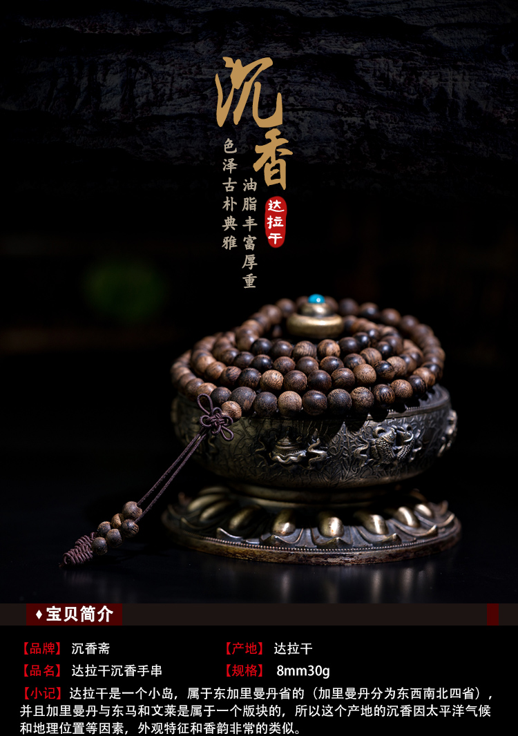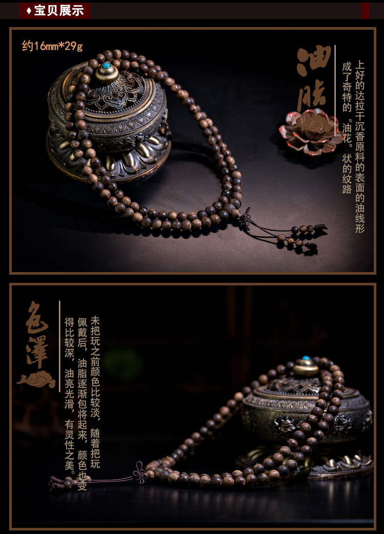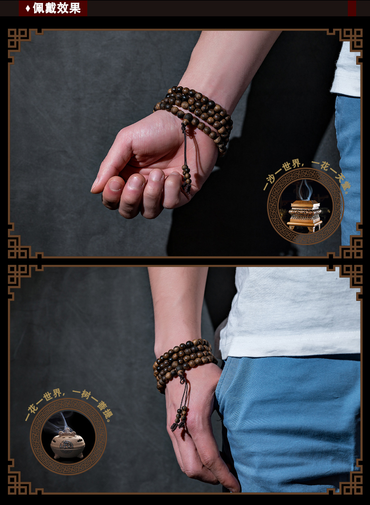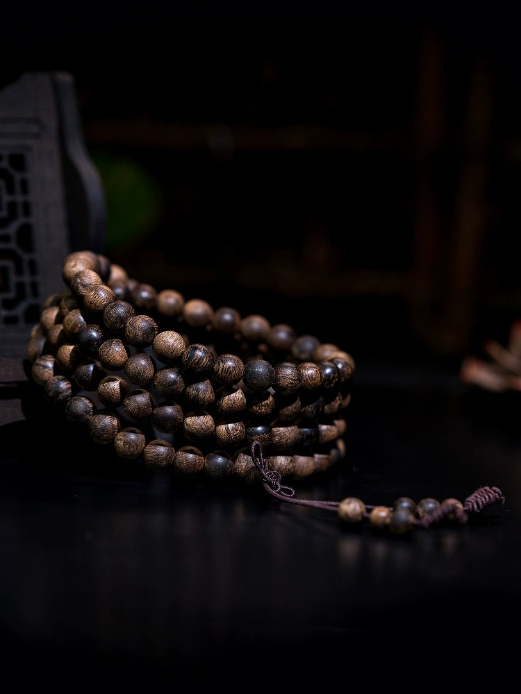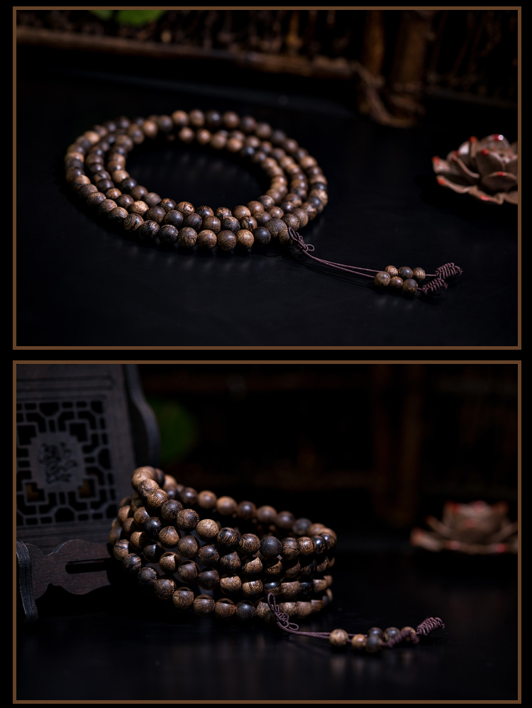 • Natural Darakan agarwood bracelet 108 old material agarwood Buddha beads women's men's bracelet submerged grade fidelity 8mm