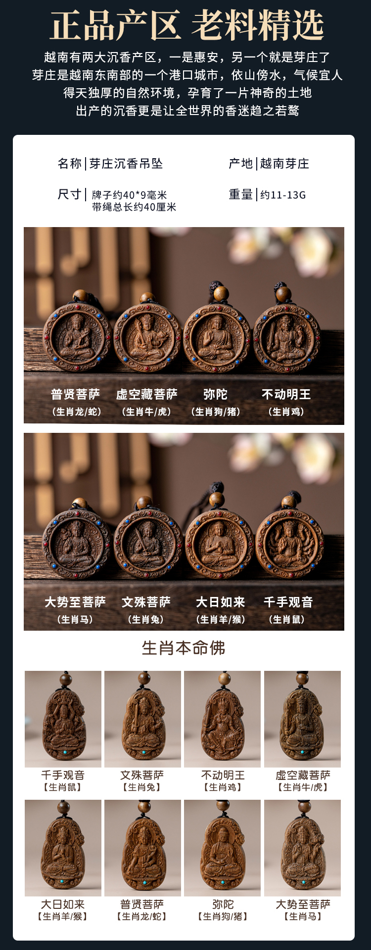 • Genuine Vietnamese Nha Trang agarwood engraving brand, zodiac pendant, natal Buddha pendant, Year of the Snake wood Buddha brand, Puxian Bodhisattva