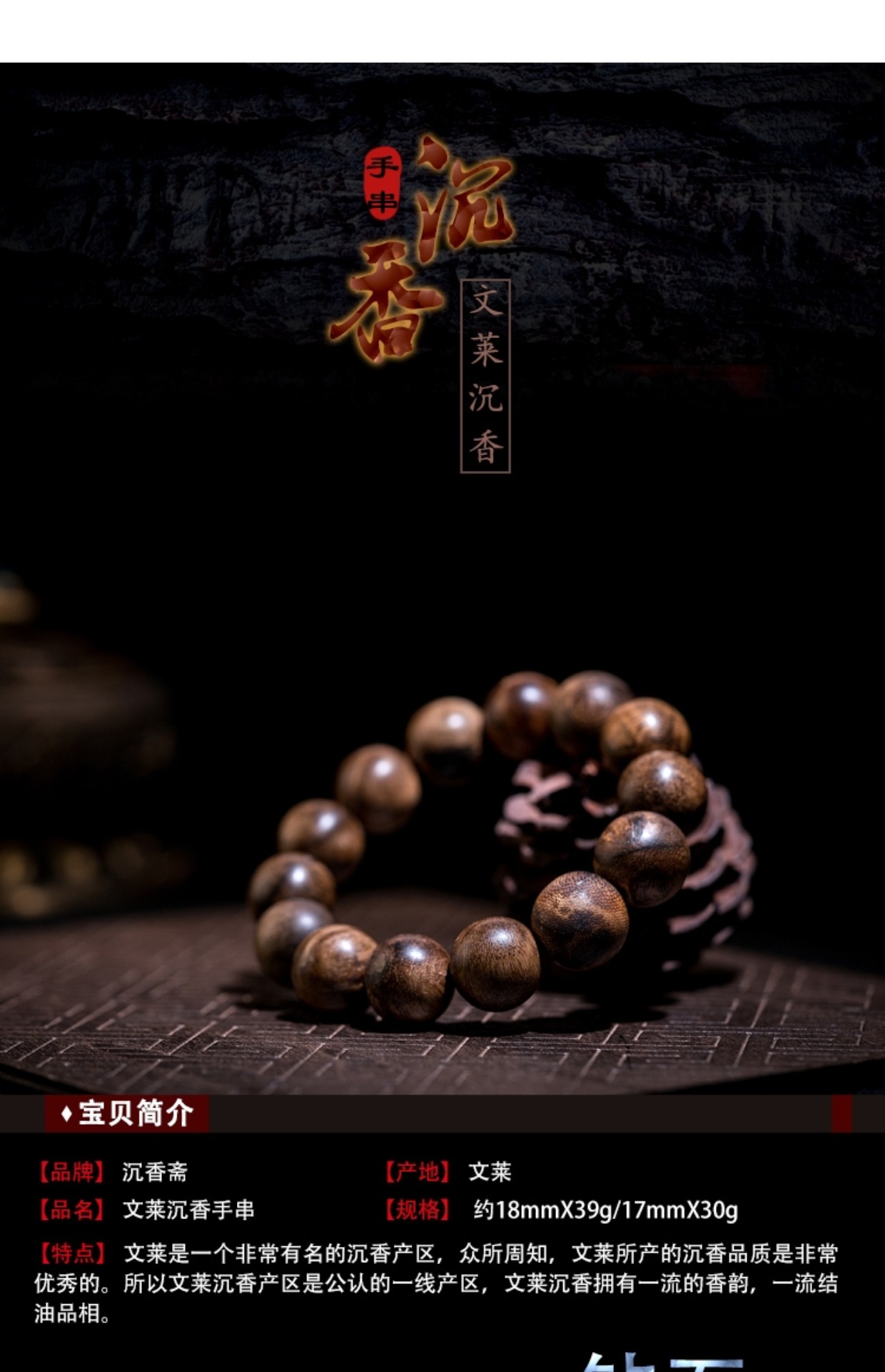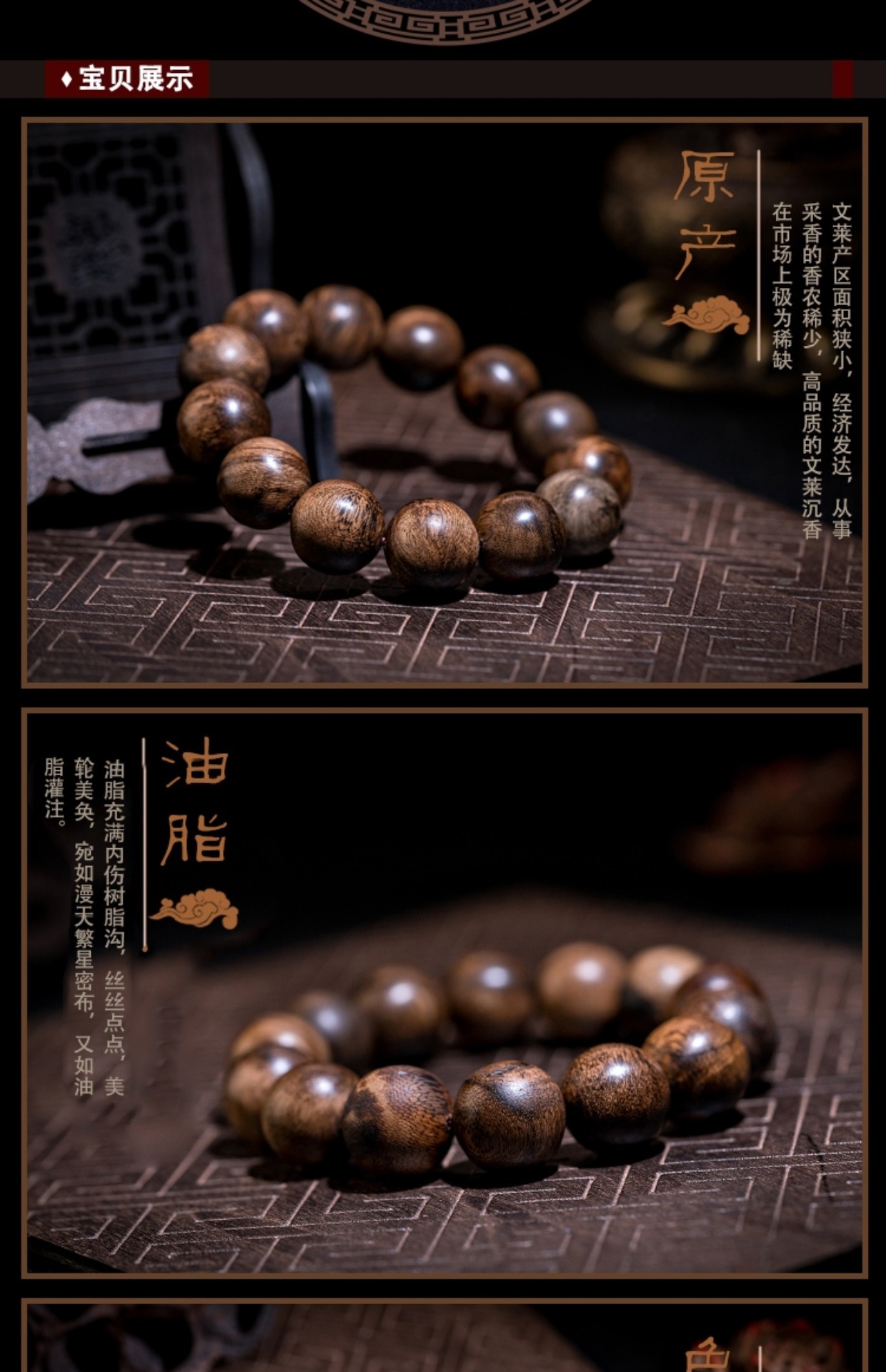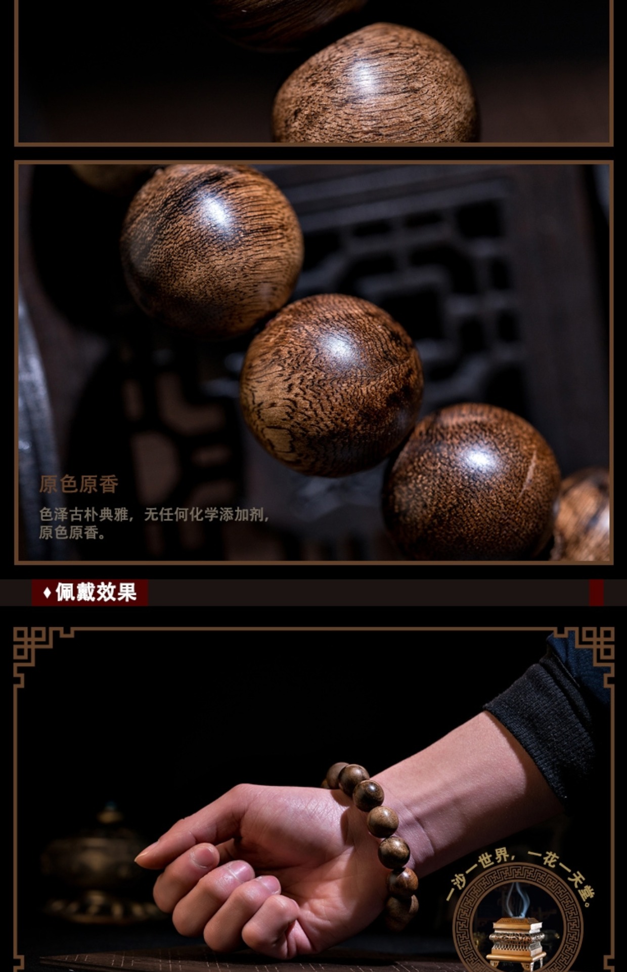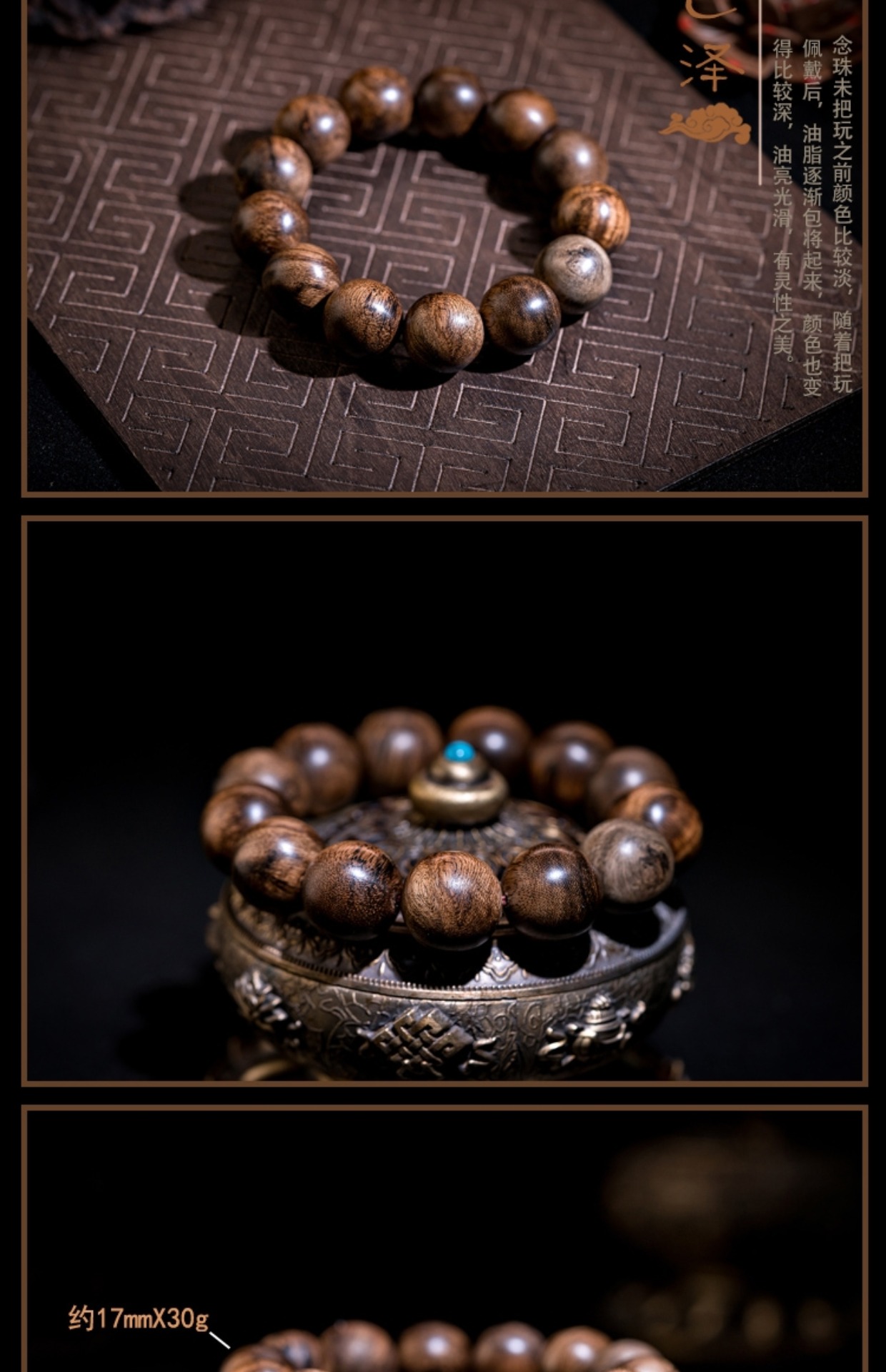 • Natural Brunei agarwood bracelet submerged old material agarwood bead men's high-end cultural play wood bracelet gift fidelity