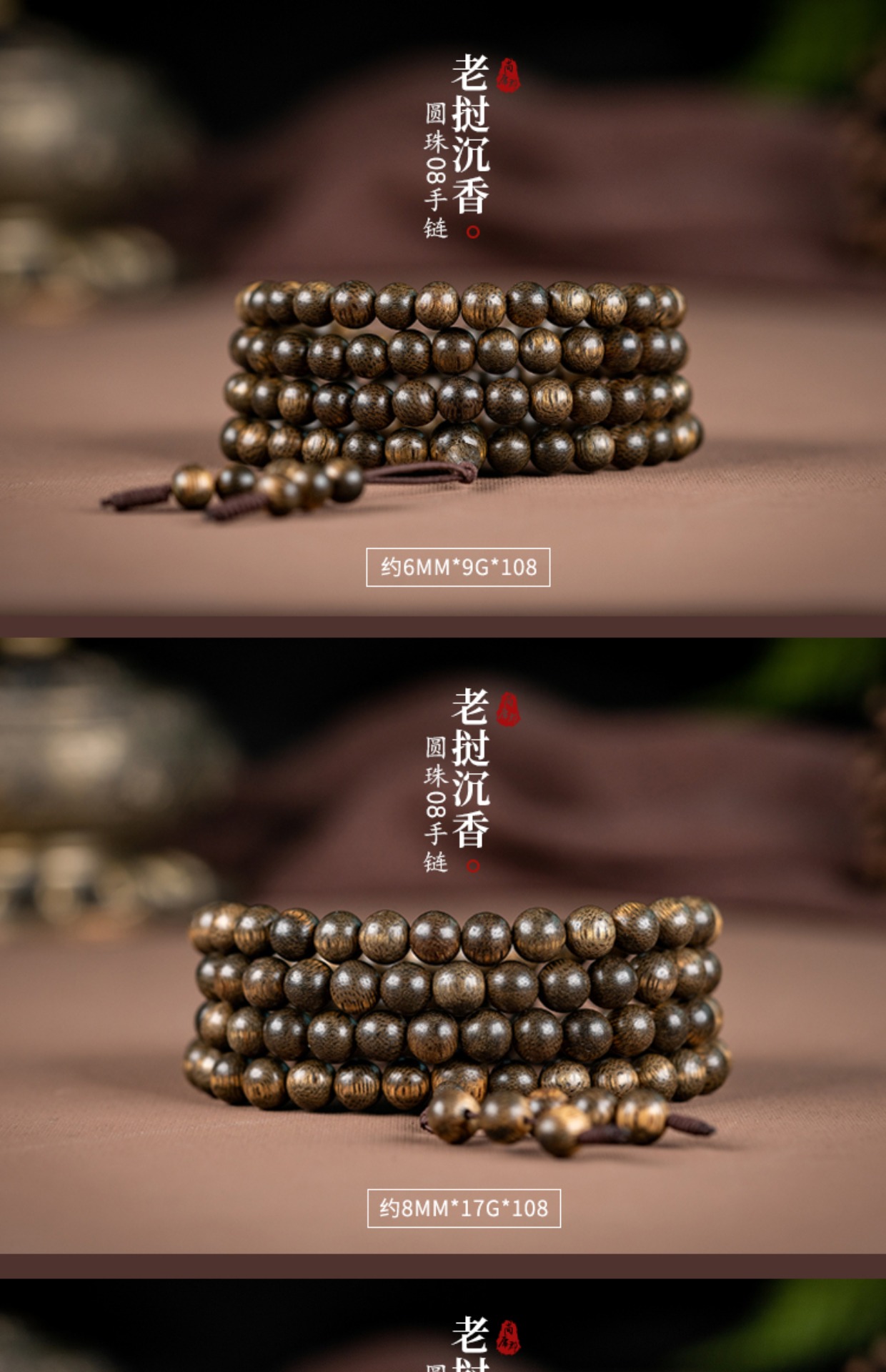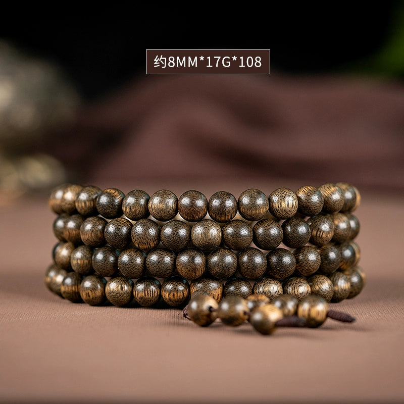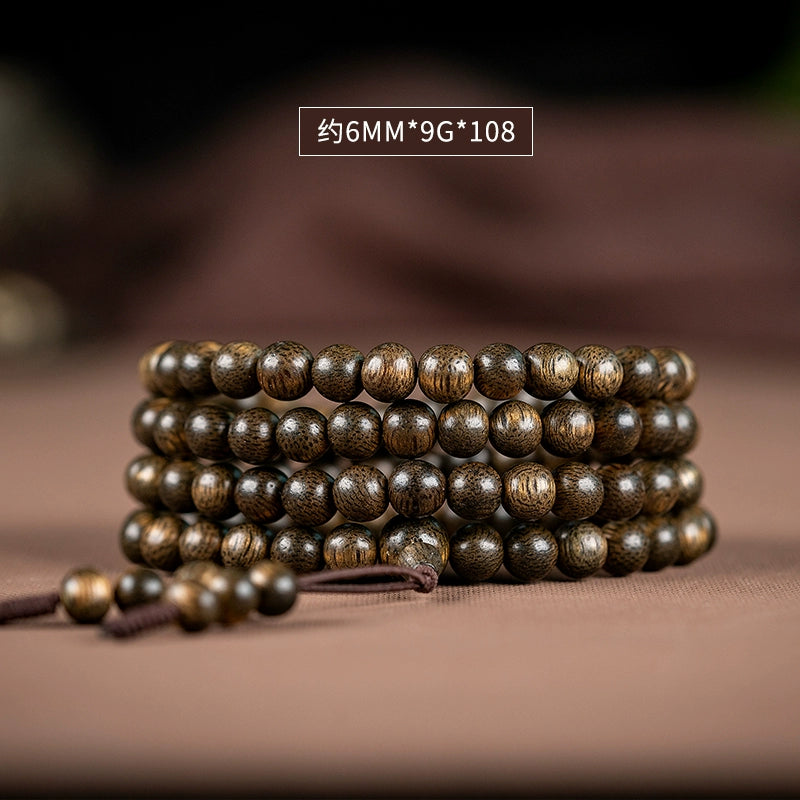 Natural Lao agarwood bracelet, fidelity old material agarwood 108 Buddha beads, women's men's multi-circle bracelet, ethnic style