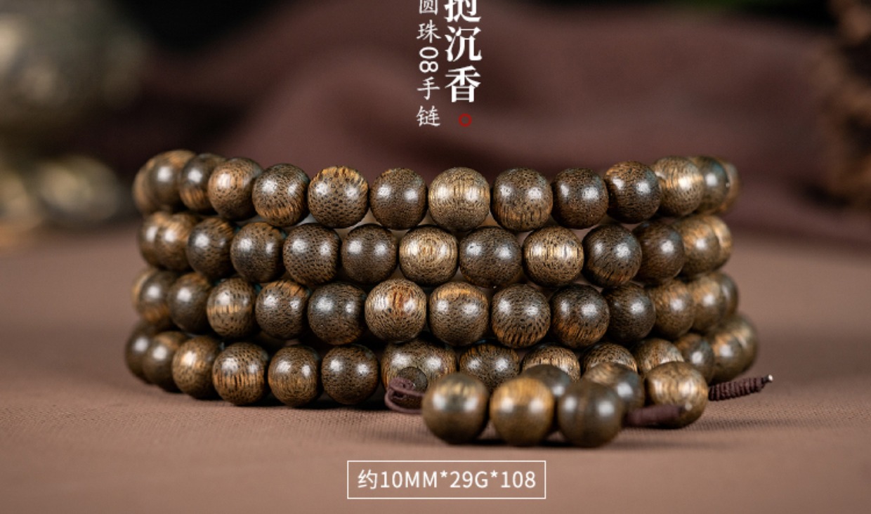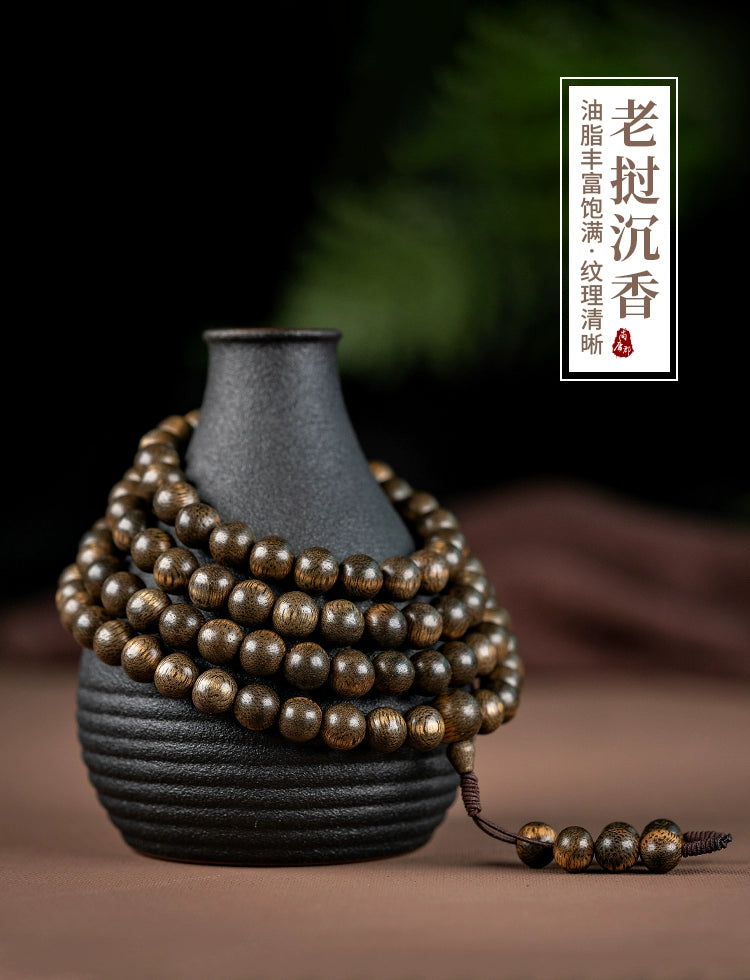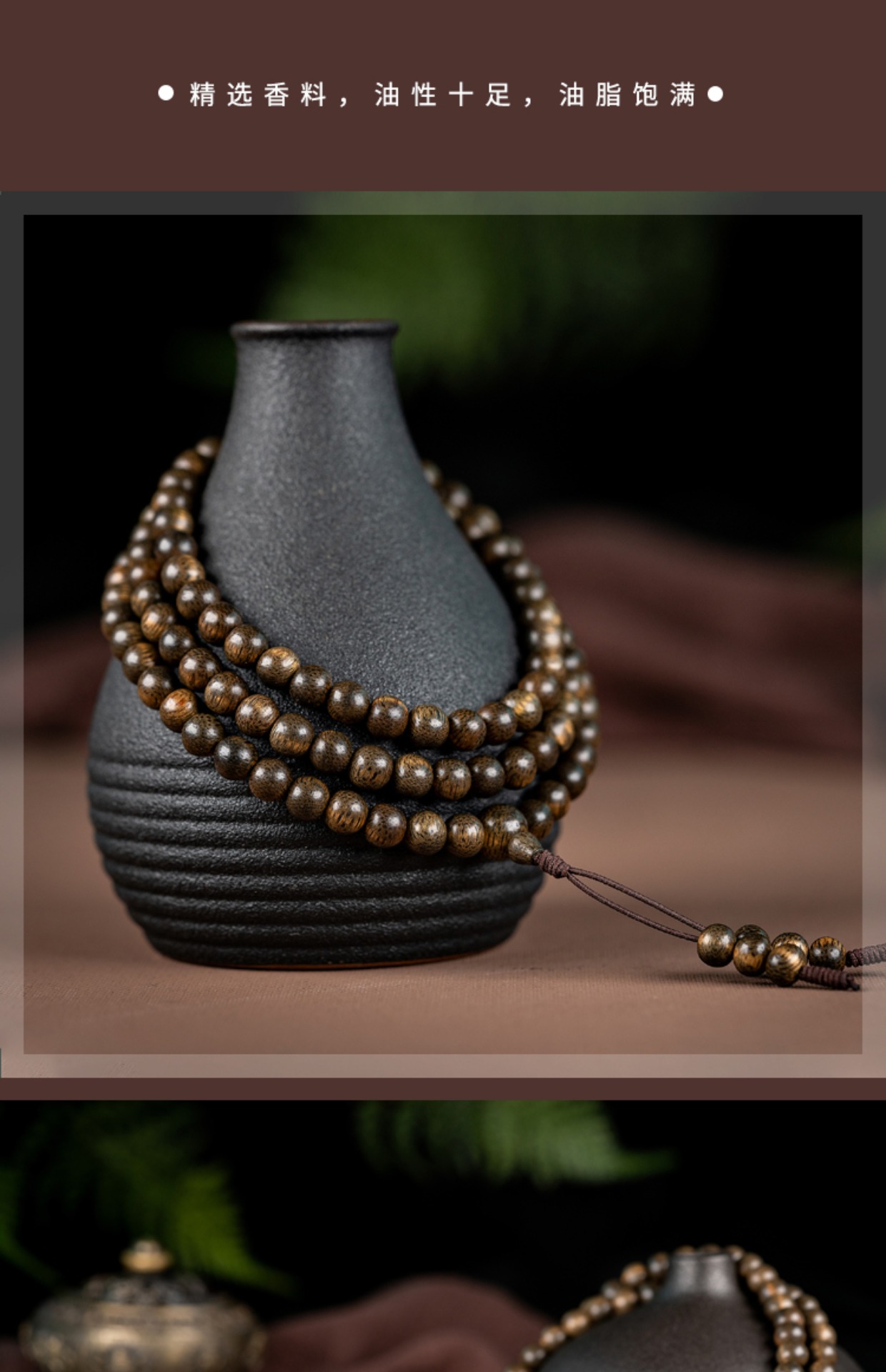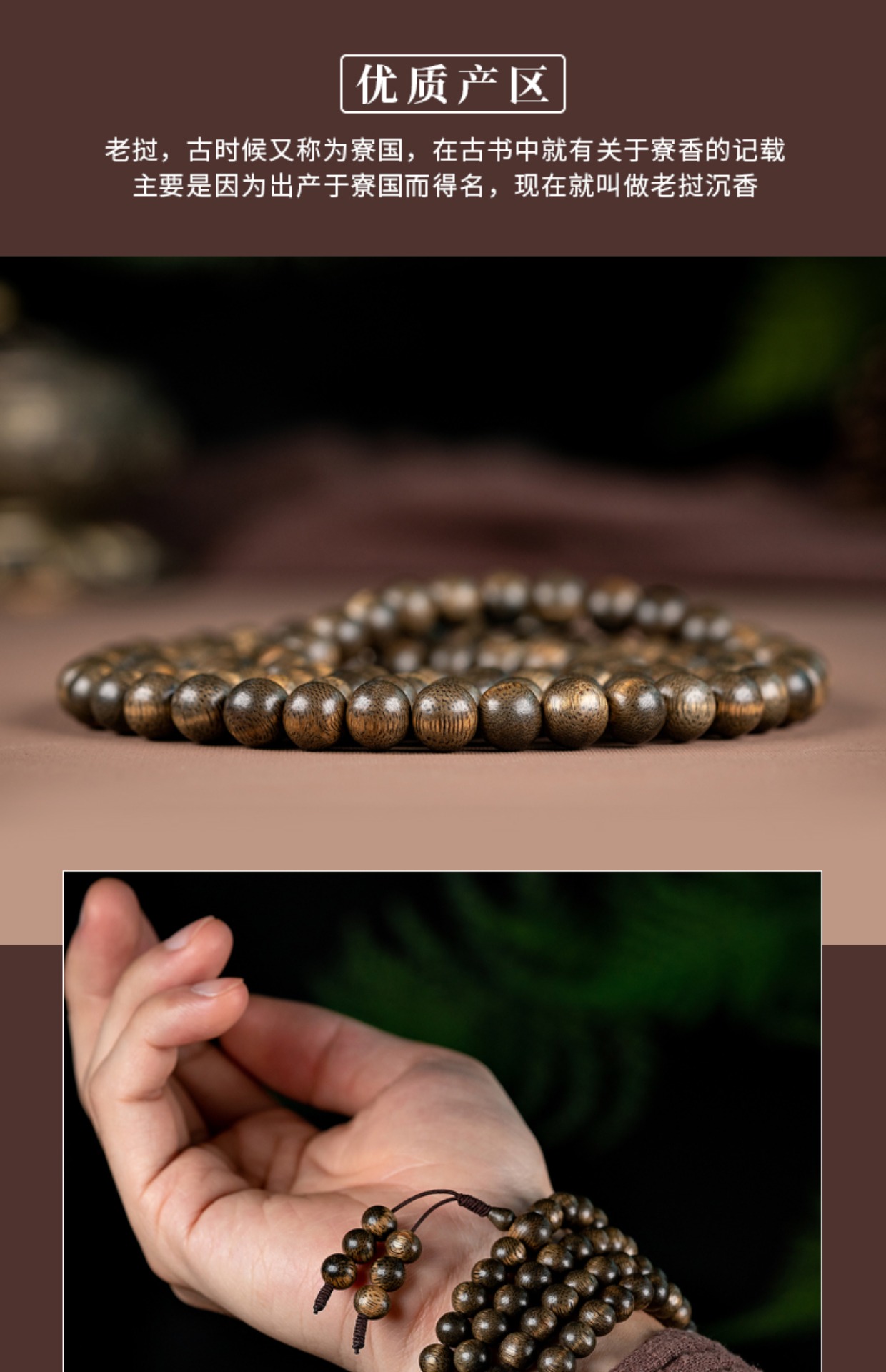 • Natural Lao agarwood bracelet, fidelity old material agarwood 108 Buddha beads, women's men's multi-circle bracelet, ethnic style