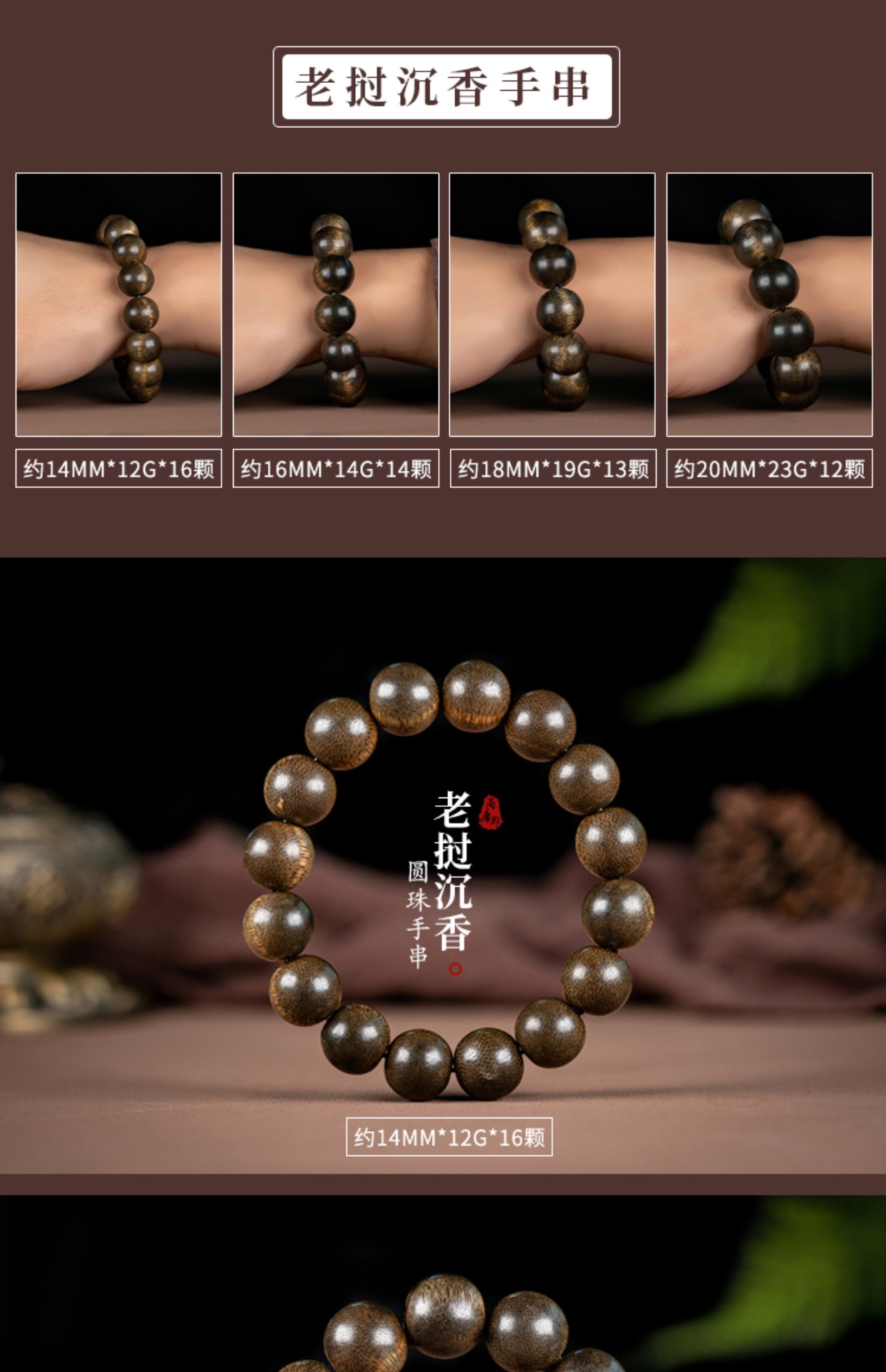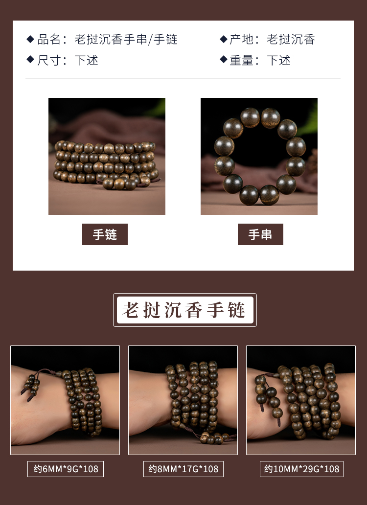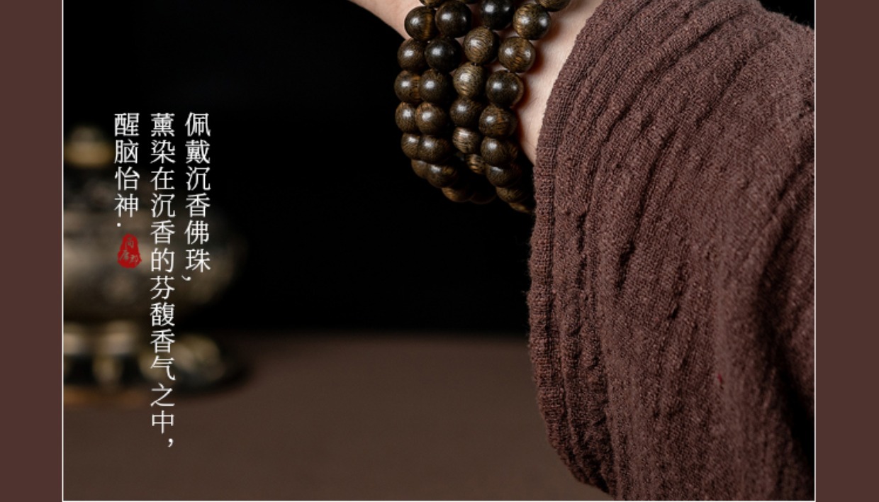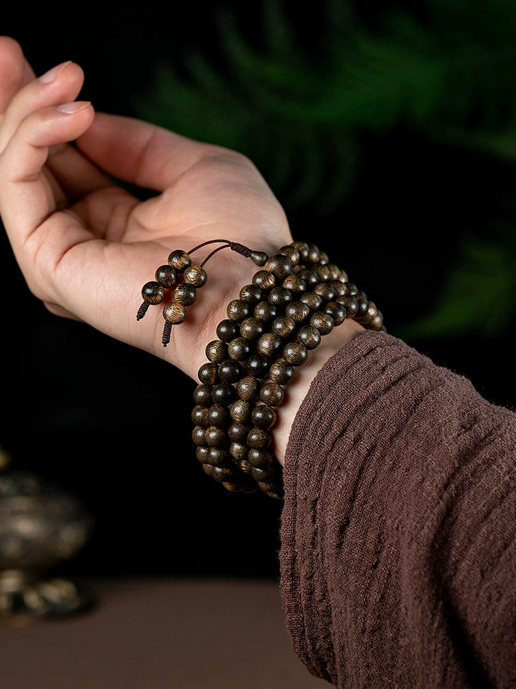 • Natural Lao agarwood bracelet, fidelity old material agarwood 108 Buddha beads, women's men's multi-circle bracelet, ethnic style